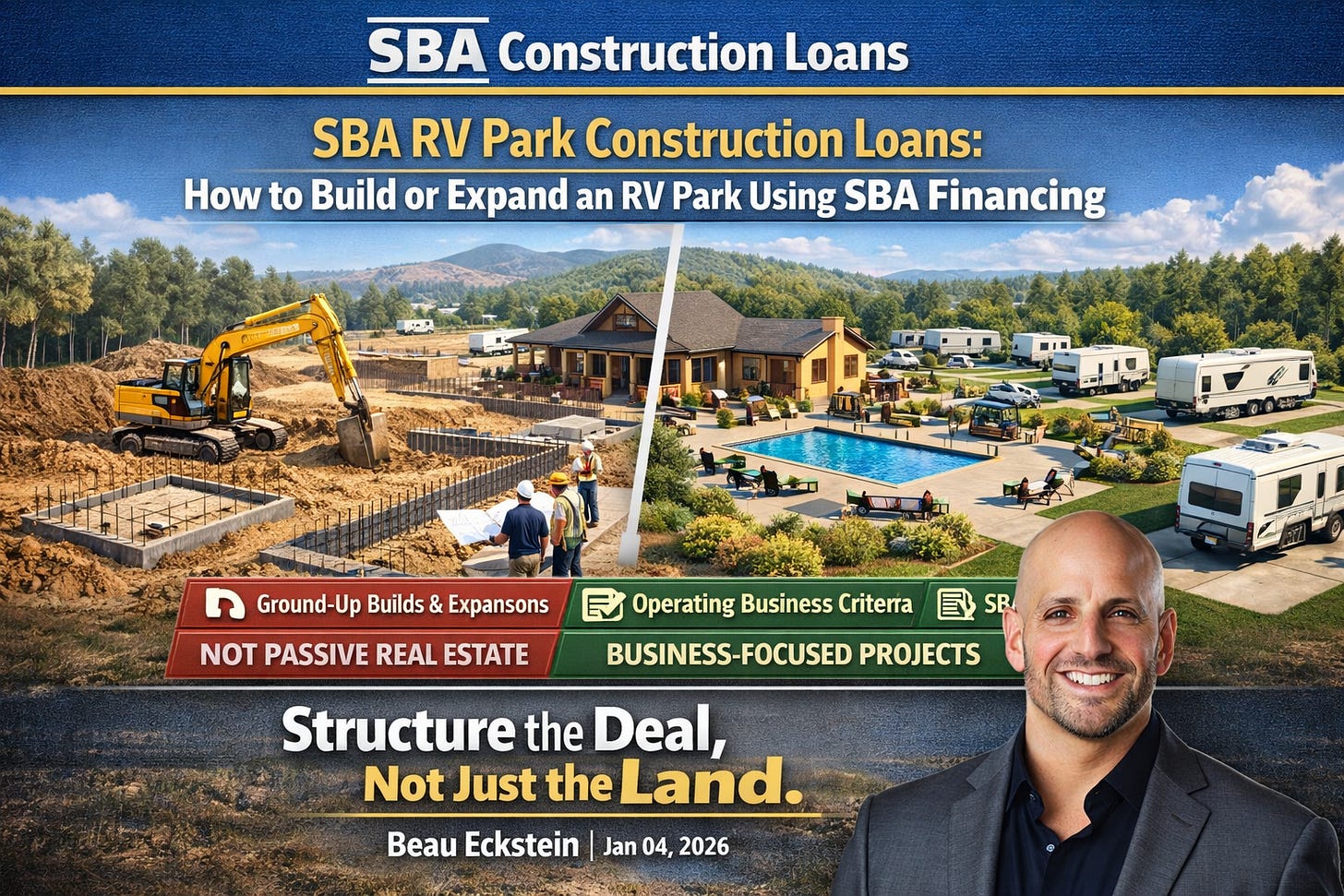 SBA financing for RV park construction can be incredibly effective — but only if the deal is engineered correctly from the start.